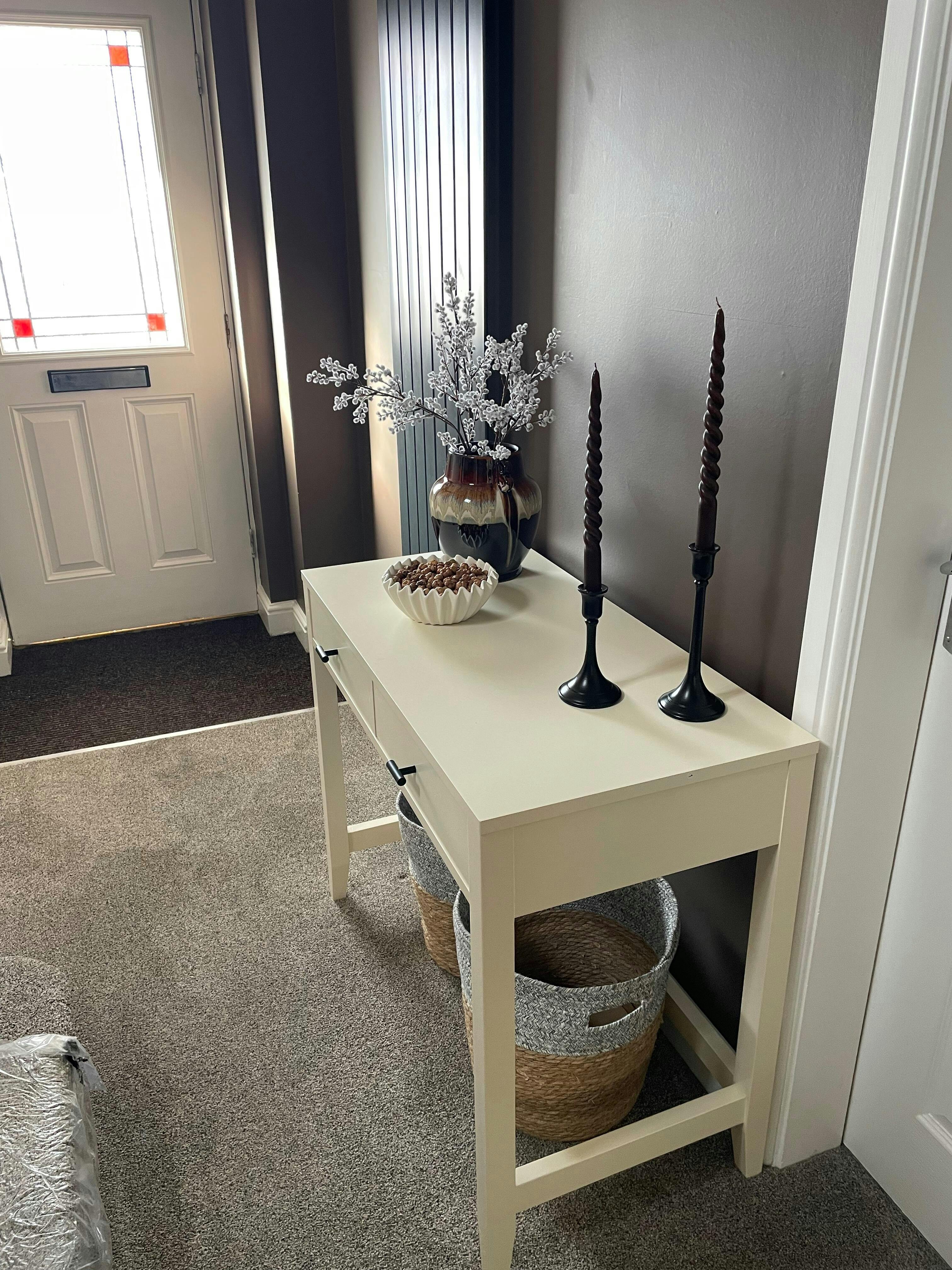 Whether placed in the bedroom as a dressing table or styled elsewhere in your home as a console table, this signature piece is effortlessly chic and versatile. With two drawers to keep your essentials close to hand, the Poppy dressing table is made with a premium durable material and is built to last. It’s available in four stunning colours: stone, sage, grey and charcoal, and its handles are customisable in either brushed gold effect or black options.