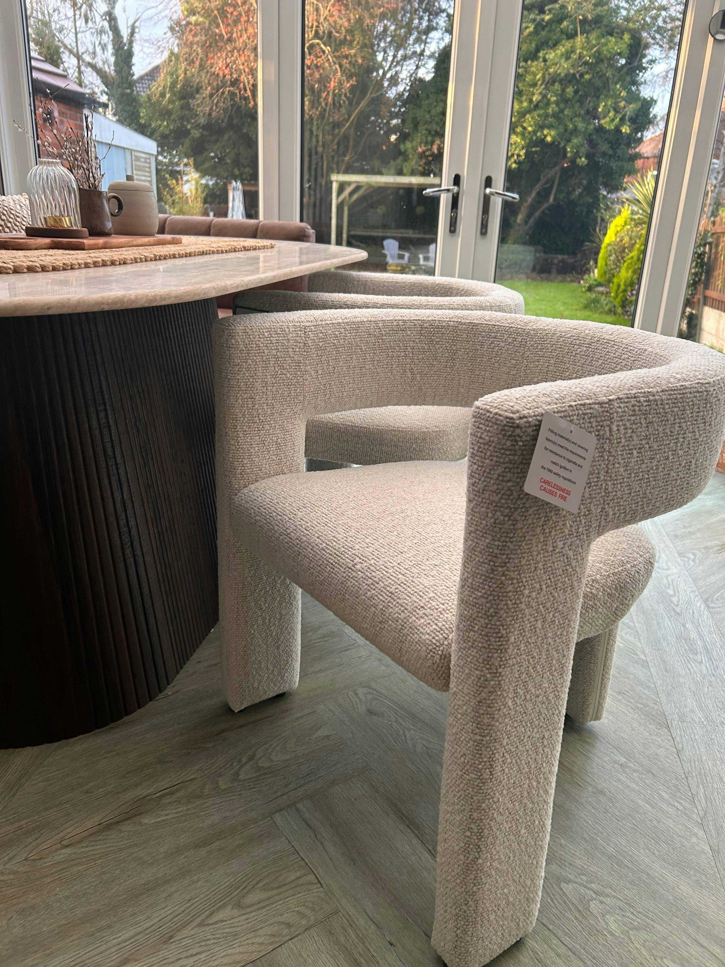 Choose from six stunning colourways: blush, sand, rust, pink, blue, sage, and ivory in boucle fabric. With such a wide range of options, you’re sure to find the perfect colour to match your existing decor or create a bold new statement.