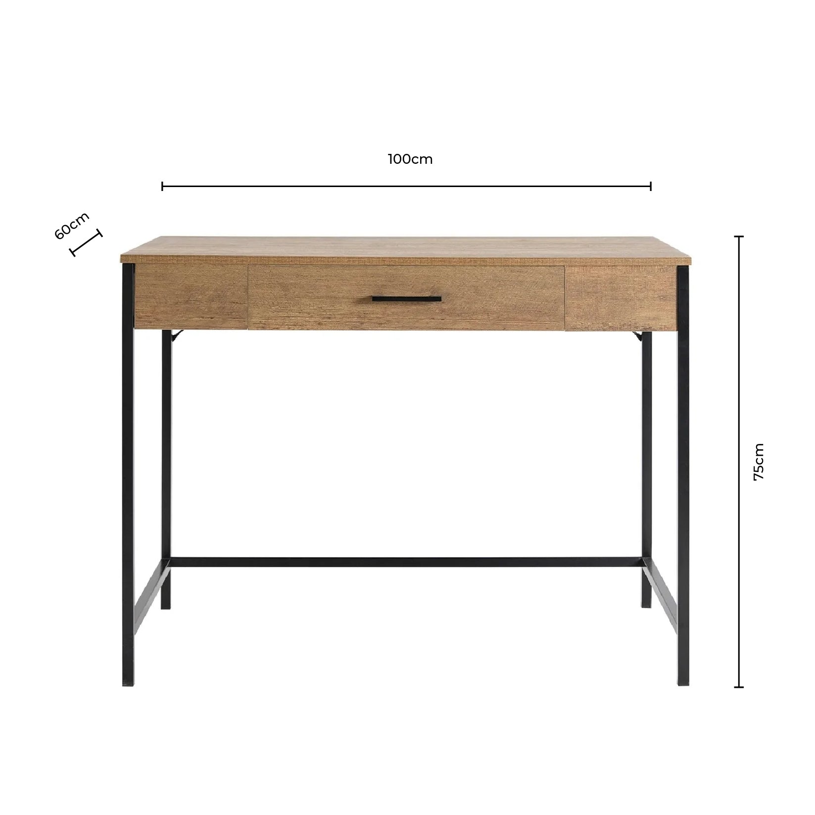 The Riley desk with a handy drawer blends industrial style with everyday practicality.