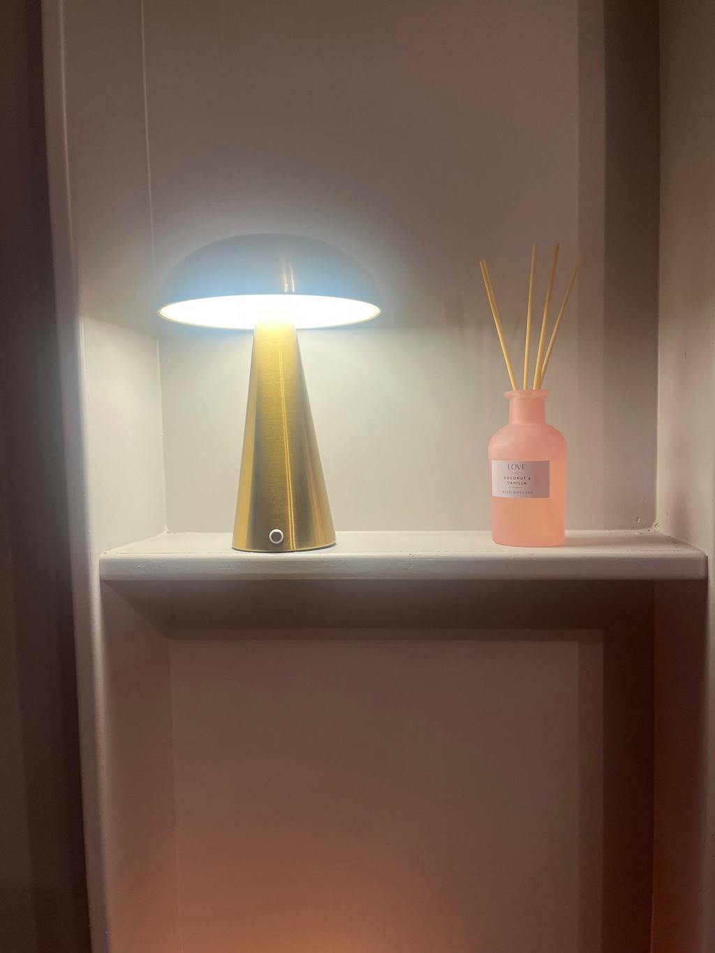 The touch lamp’s unique mushroom-like design and warm gold finish add a touch of modern elegance to any room. Enjoy the freedom of wireless lighting with the built-in rechargeable battery. The 3-way touch bedside lamp allows you to adjust the brightness to suit your mood and needs.