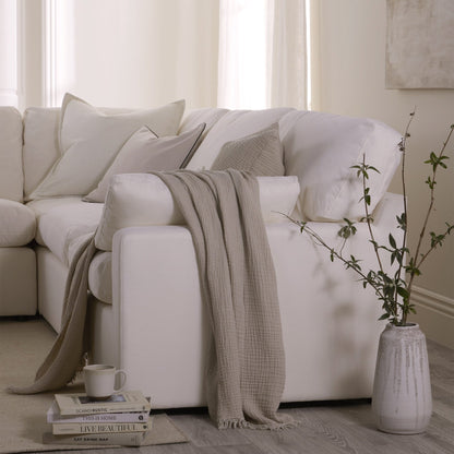 Made from 100% cotton muslin, this throw combines delicate texture with lightweight comfort. The tufted design adds a touch of understated elegance, while the four-layer construction keeps you cosy year-round. Drape it over your sofa or bed for a relaxed, inviting look.