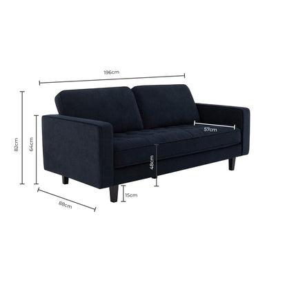 In addition to the olive matte velvet, the Sloane 3 seater sofa also comes in dark navy. The Sloane collection is also available in a number of different styles and formats. Choose whether to mix and match, or treat yourself to the whole collection which includes: