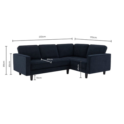 Your Sloane 3-seater large corner sofa will be delivered to the room of your choice. It comes pre-assembled with only the feet to attach, leaving you to get cosy and settle down in style.