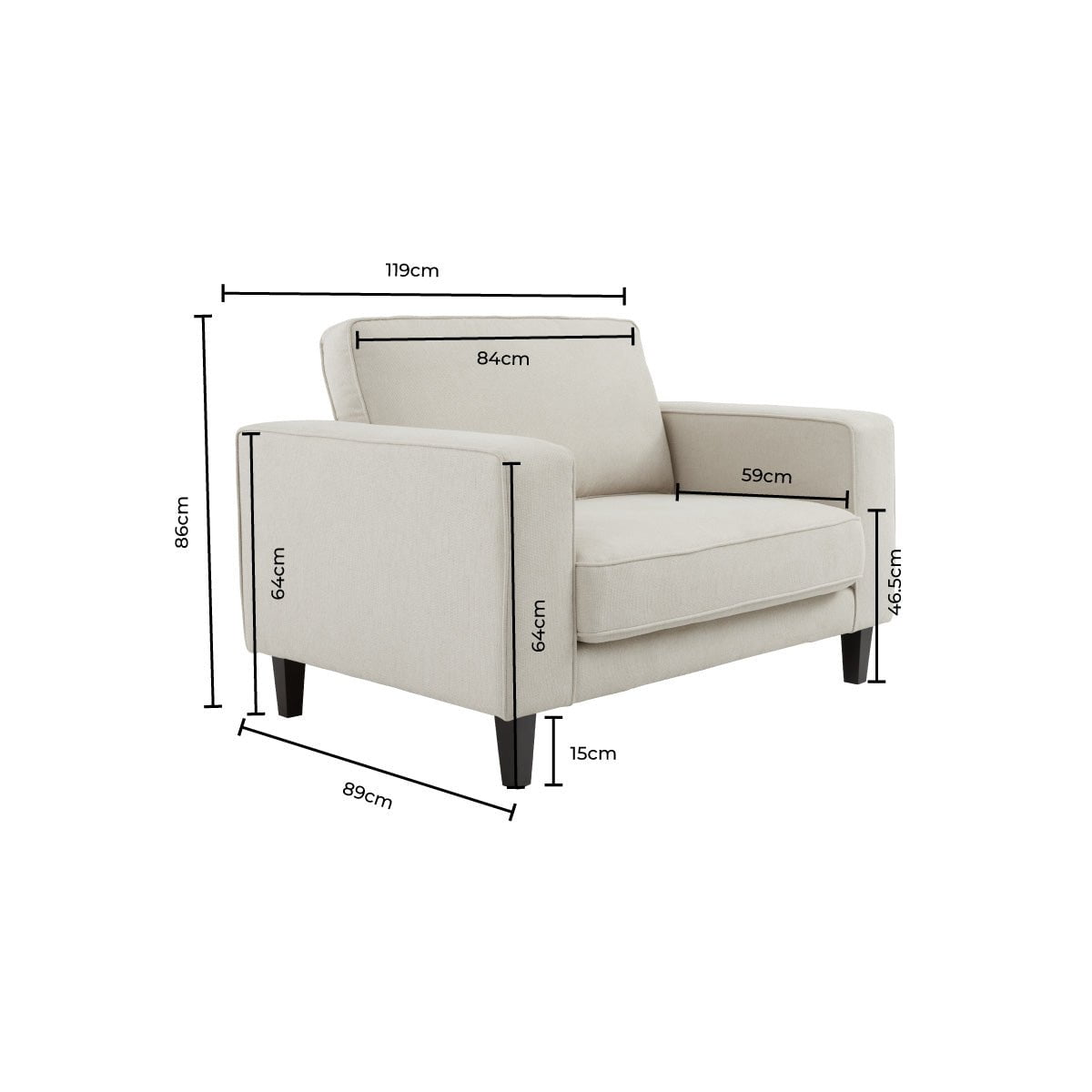 With a beautiful natural soft textured weave fabric, style and effortless comfort are leading the way. Made with a premium soft fabric, the loveseat has a pocket sprung seat for comfort and longevity, and back cushions that give a firm, down-like feel. It also boasts a subtle piping detail and wooden legs for a contemporary yet classic feel.