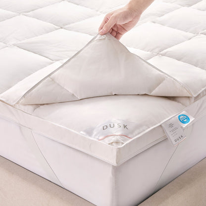 Breathable yet indulgent, our Supreme goose down mattress topper is the ultimate in luxurious comfort. Featuring a two-tiered design, the top layer of this mattress topper contains 70% fluffy goose down, while the bottom feather-filled layer provides gentle support.