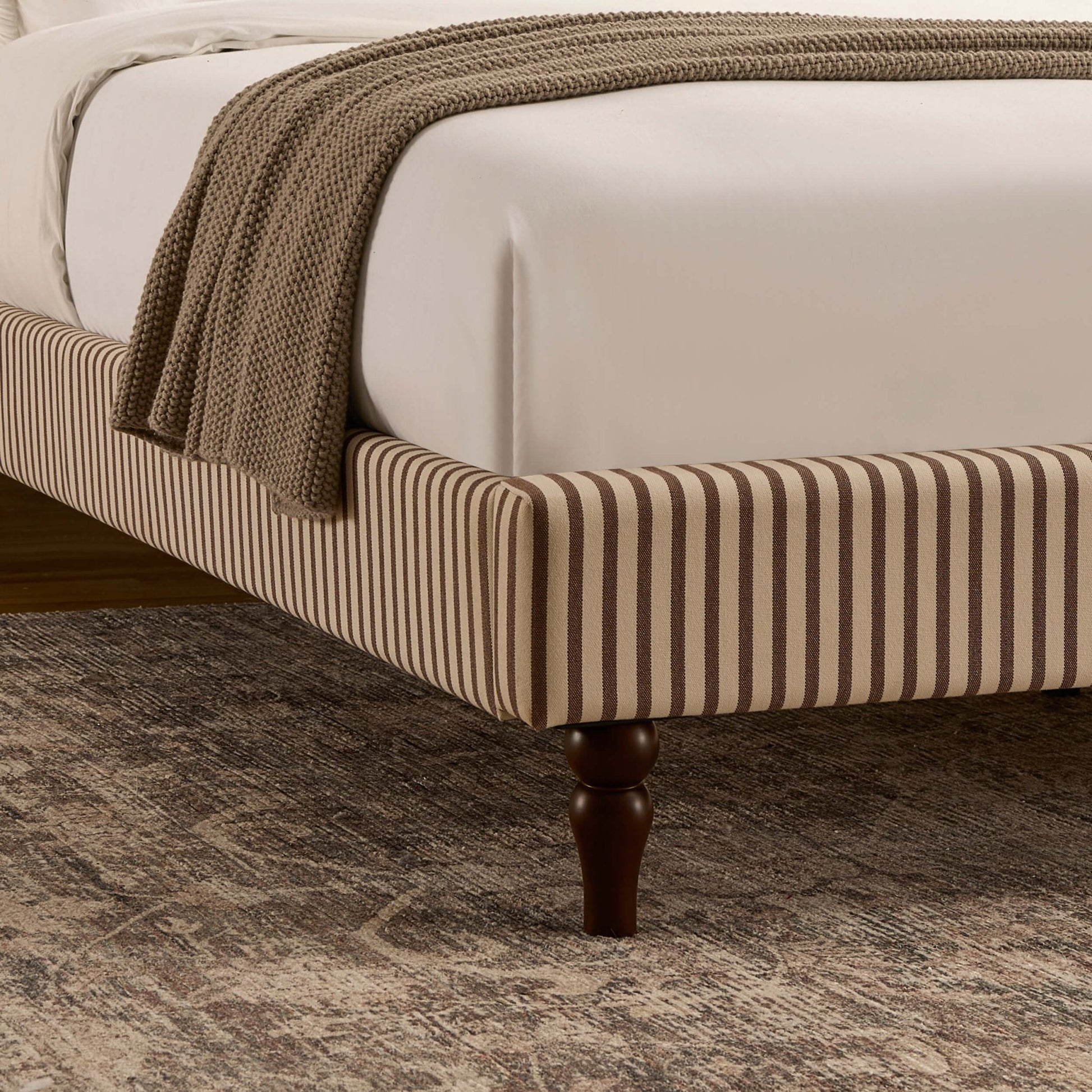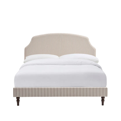 Upholstered in an elegant sand stripe or sage stripe linen design, this bed effortlessly balances timeless tradition with modern sophistication.