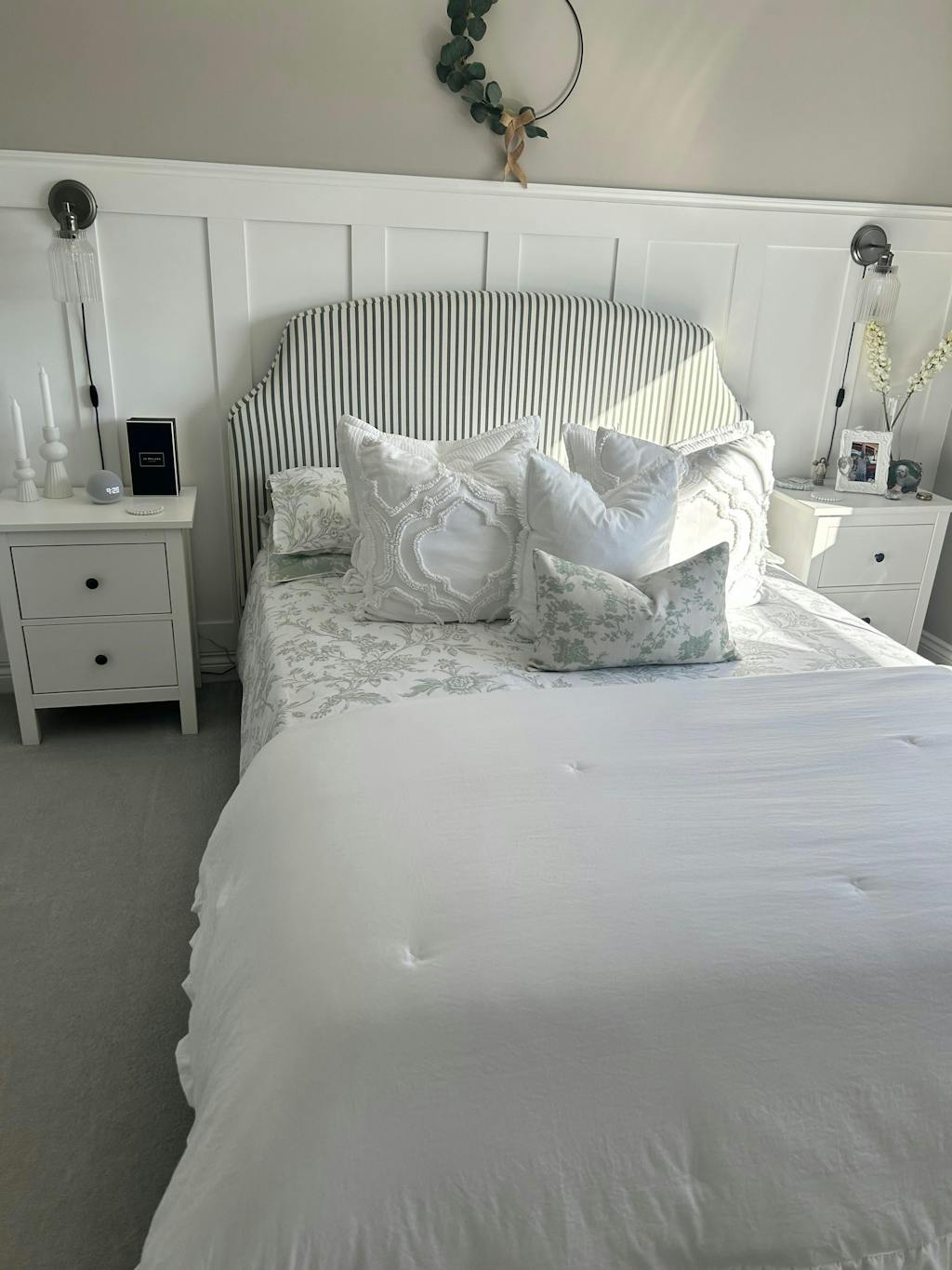 Featuring a gracefully curved headboard, delicate piping, and turned wooden legs, the Surrey frame brings a boutique feel to your space. The soft yet structured linen upholstery enhances its refined aesthetic, making it the perfect centrepiece for both classic and contemporary interiors.
