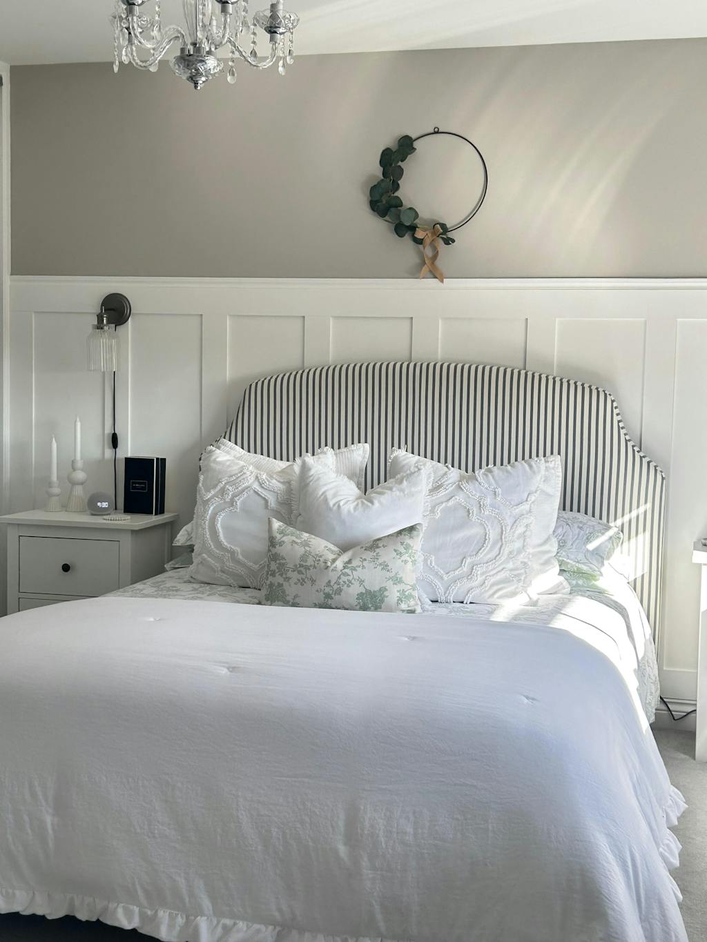 Classic charm meets contemporary style in the Surrey Striped Bed Frame.