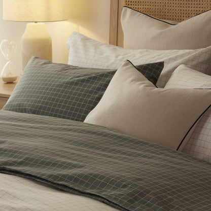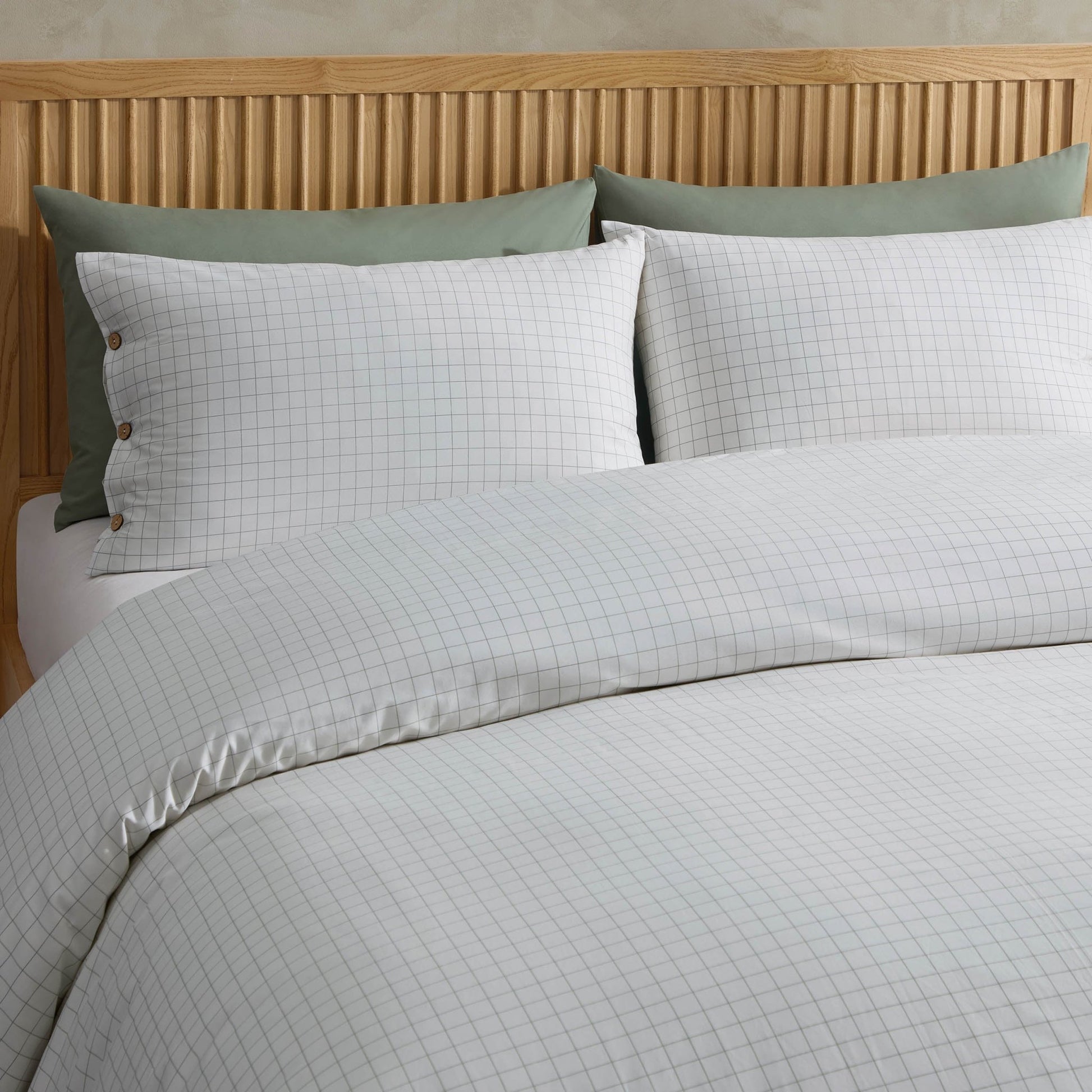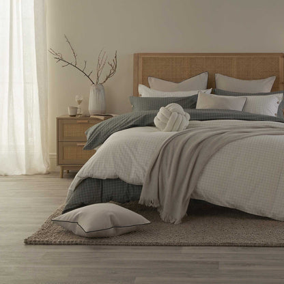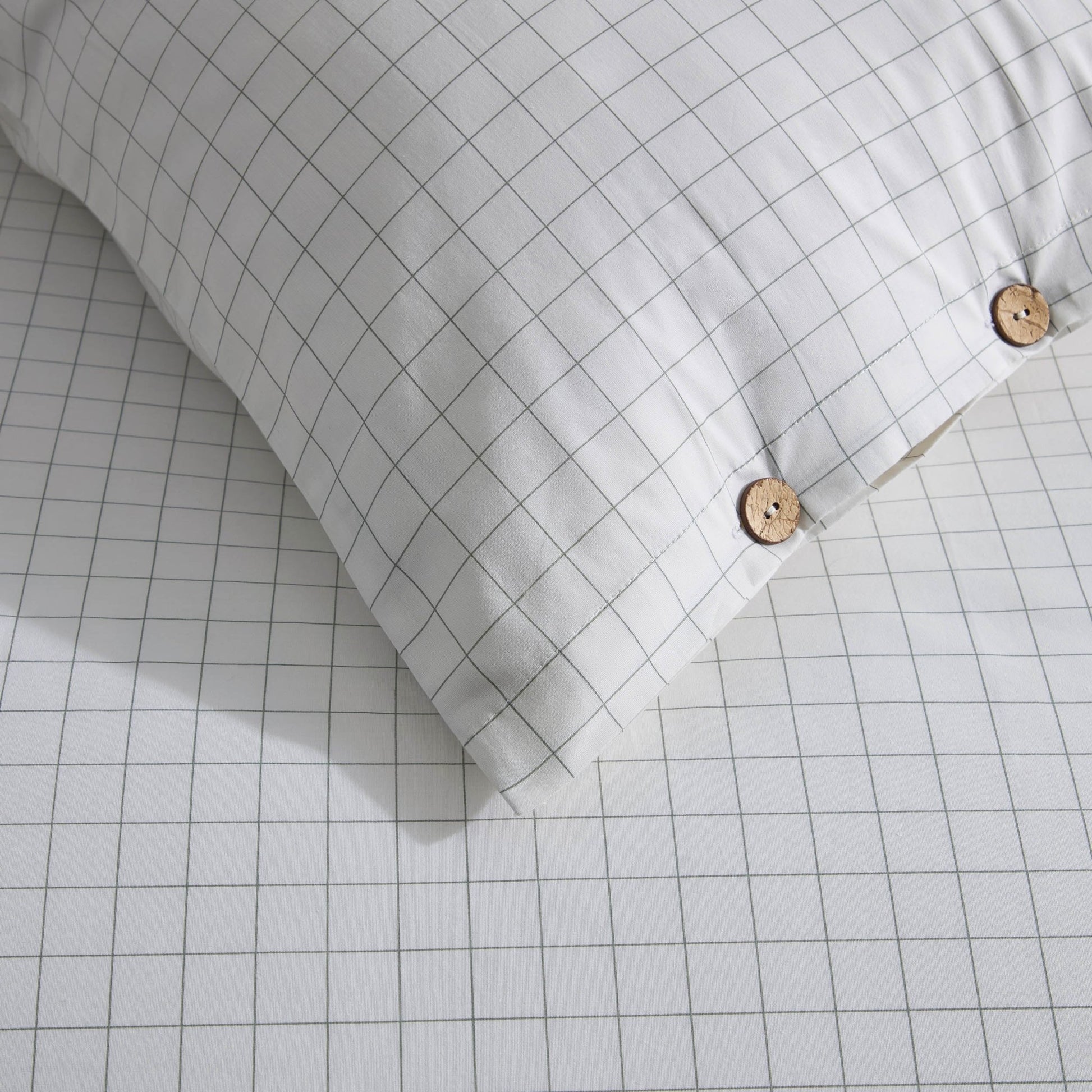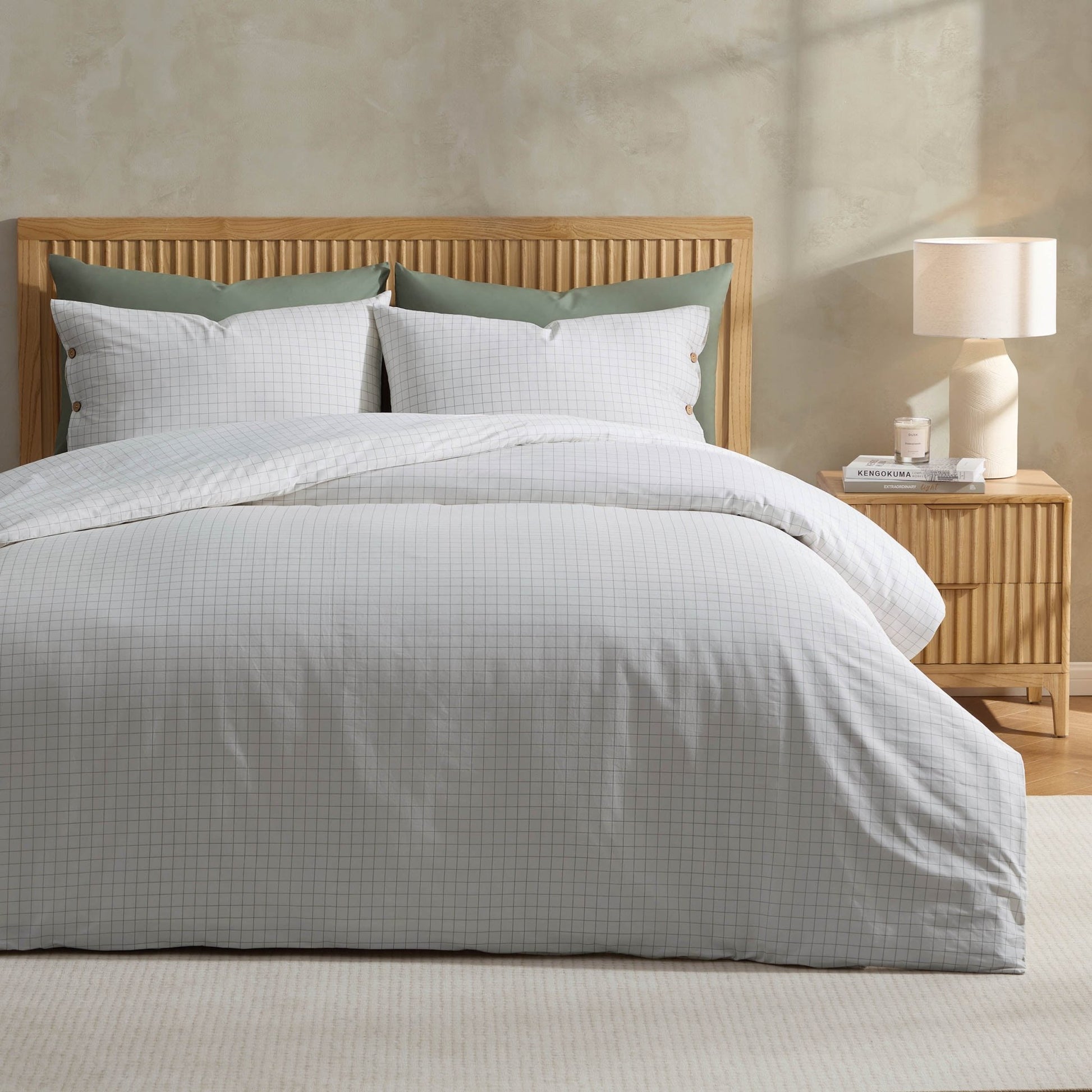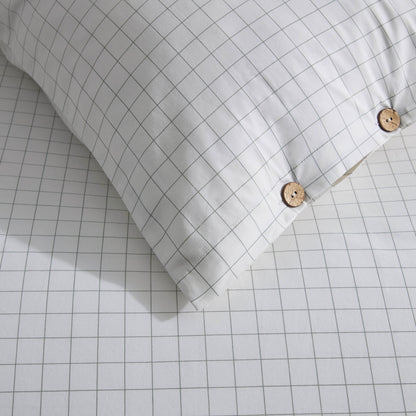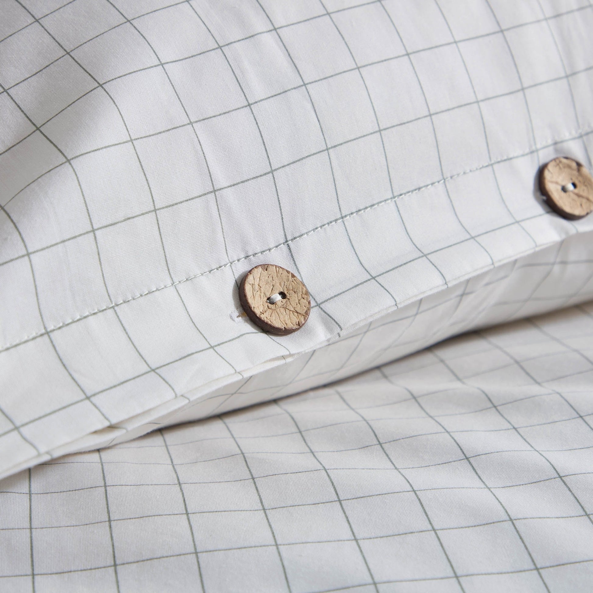 Crafted from 100% cotton percale with a 200 thread count, Thea blends effortless style with breathable comfort. The small-scale check print offers a modern twist on a timeless pattern, while wooden button details add a natural, rustic feel.