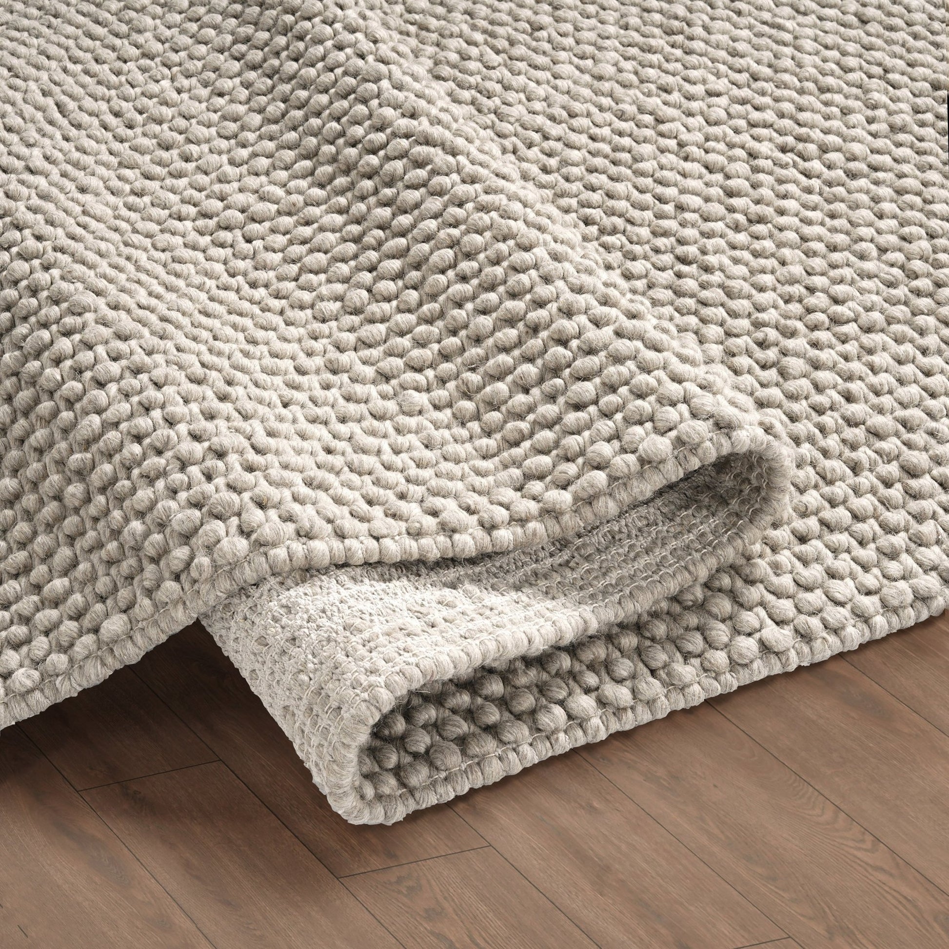 Made from wool, its playful bobble texture is soft underfoot and brings a subtle charm to any room.