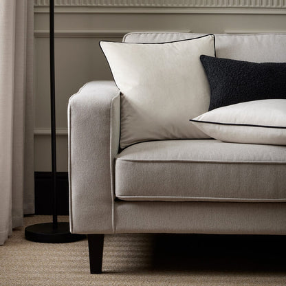 Made with a premium velvet fabric in classic off-white, this cushion cover features a delicate black piping detail for a striking colour contrast. Blending beautifully with any classic or contemporary interior, it will create a stunning finishing touch when scattered across your sofa or bed, whilst its soft to the touch feel provides unmatched comfort as you relax and unwind.
