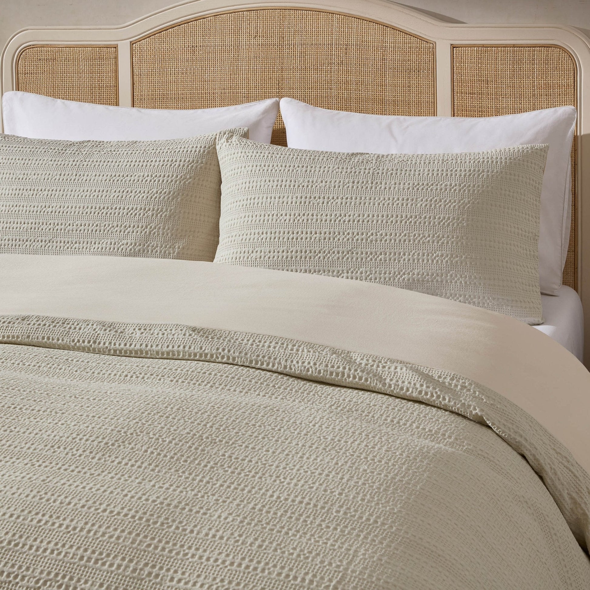 Introduce texture and warmth to your bedroom with the Vermont Waffle Duvet Cover Set.