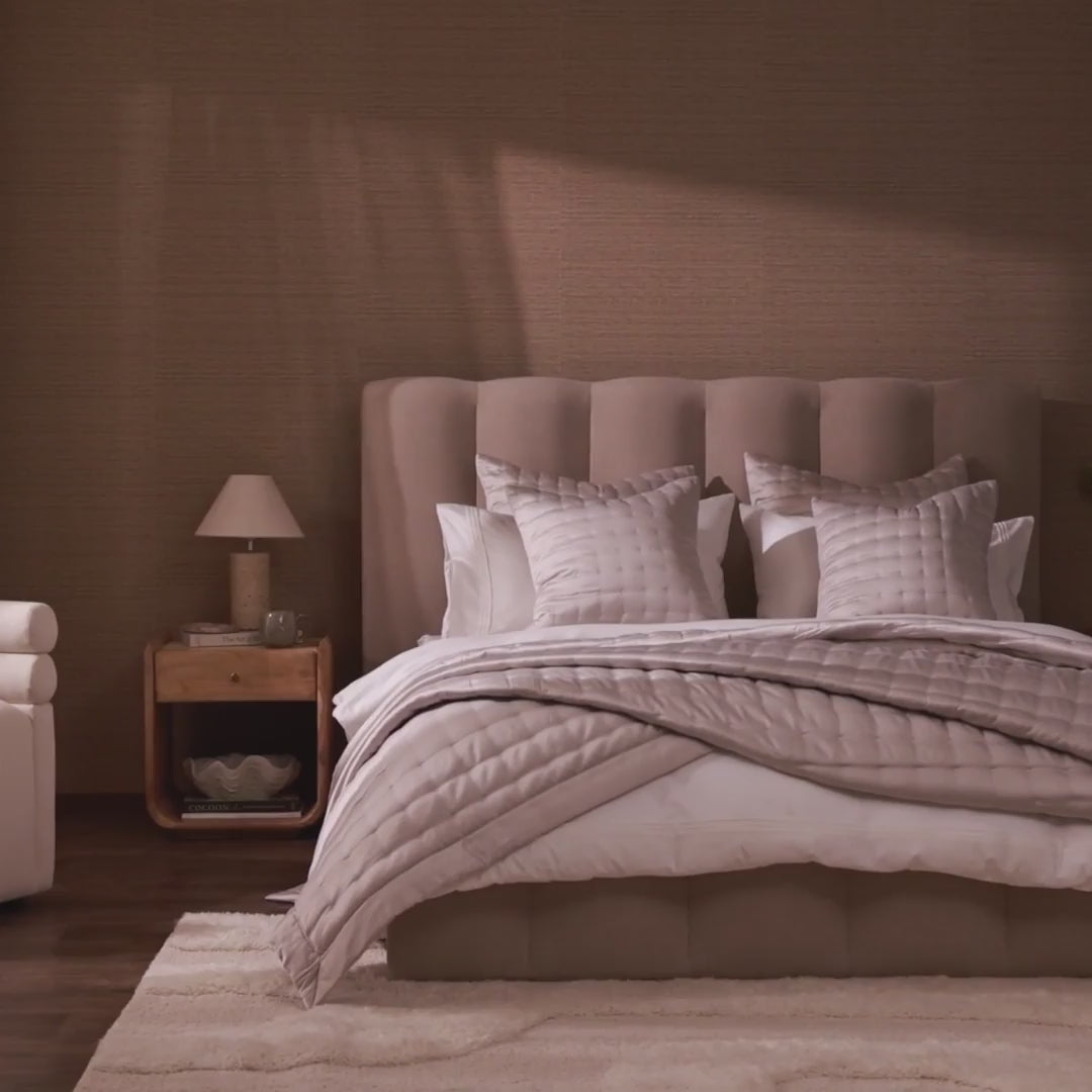 Featuring plush quilting and finished in a matte faux silk, the Vienna champagne bedspread is chic, classic and effortlessly elegant. This subtle shade adds a sophisticated edge to any bedroom, while the sumptuous quilting makes this design soft and inviting.