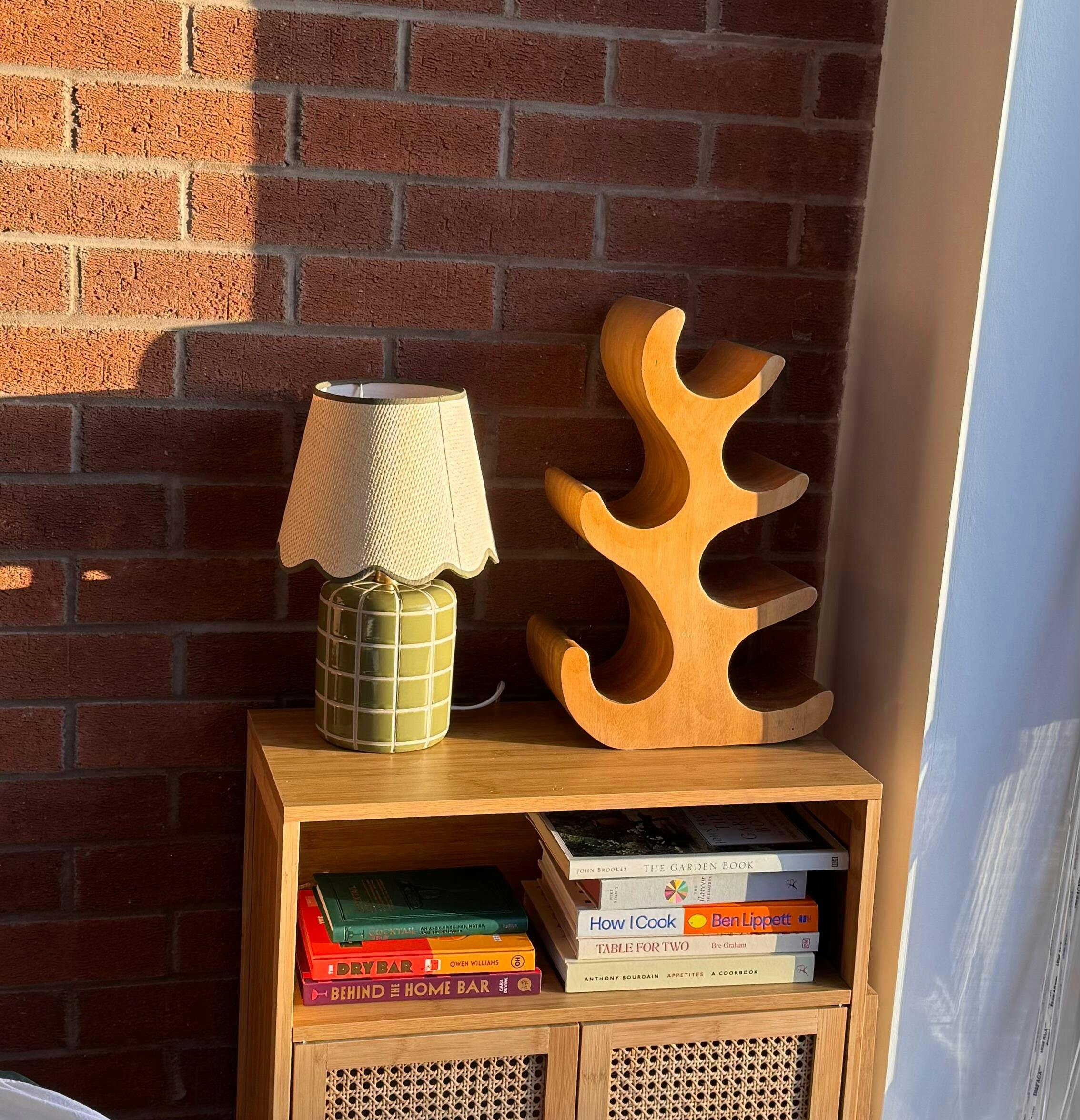 Crafted from carved ceramic with a glossy green glaze, the Vivienne lamp base features a subtle grid design that adds depth and detail without overpowering your space. Paired with a gently scalloped woven shade in a natural finish, trimmed in contrasting green, it offers a warm, layered look that works beautifully in bedrooms, living rooms or cosy reading corners.