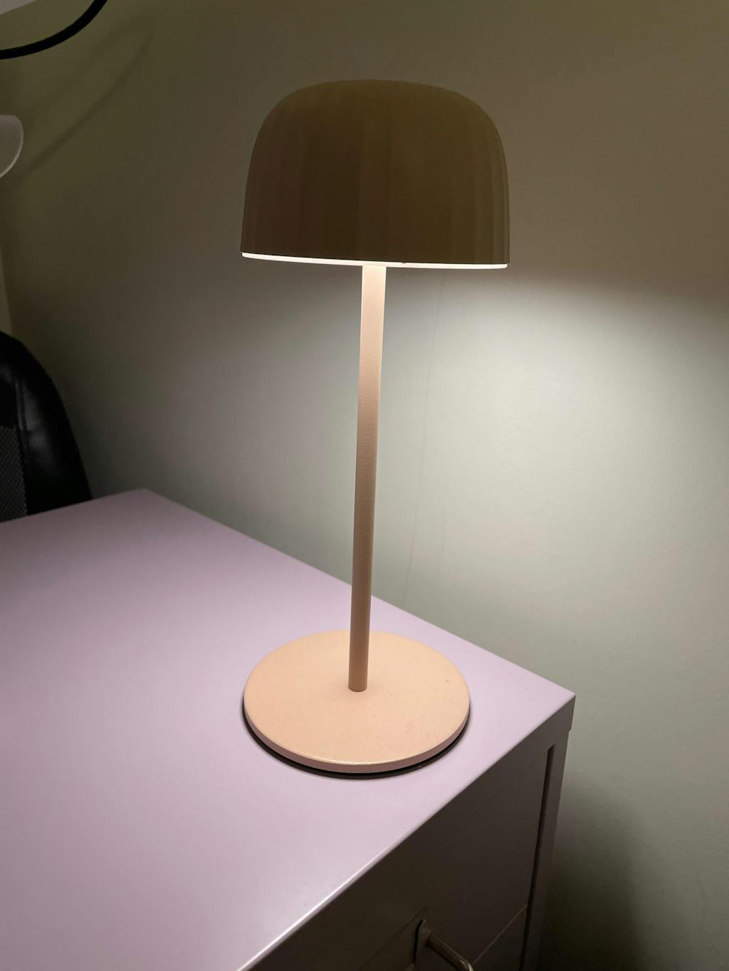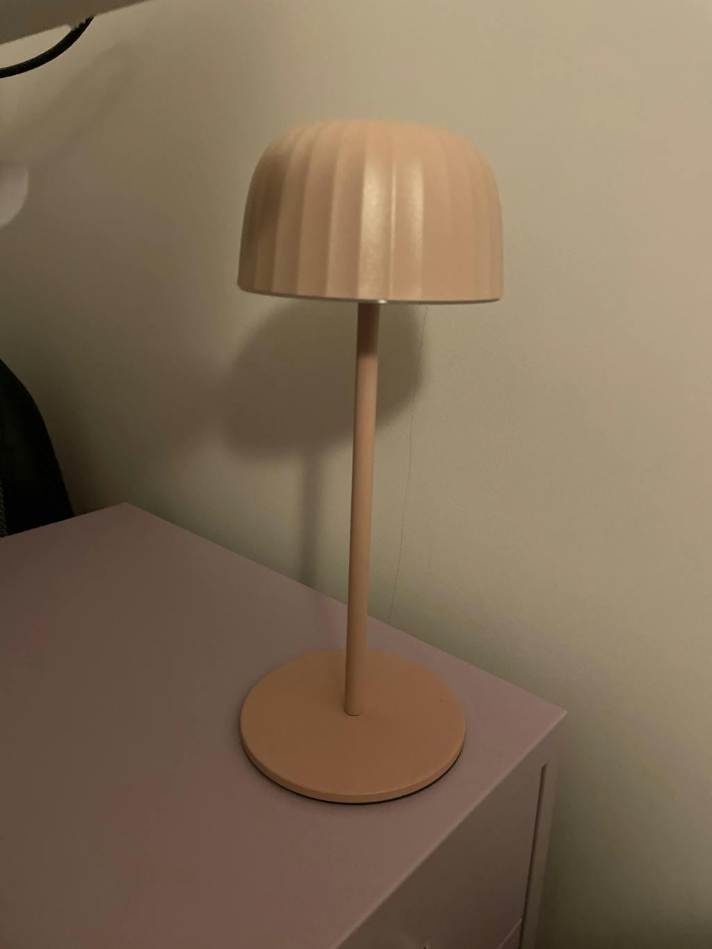 You can find the smooth, matte finish lamp in a range of contemporary colours - black, sage green, pink, or grey. The warm glow of the integrated LED bulb sets the mood, while the rechargeable USB connection makes it effortlessly portable.