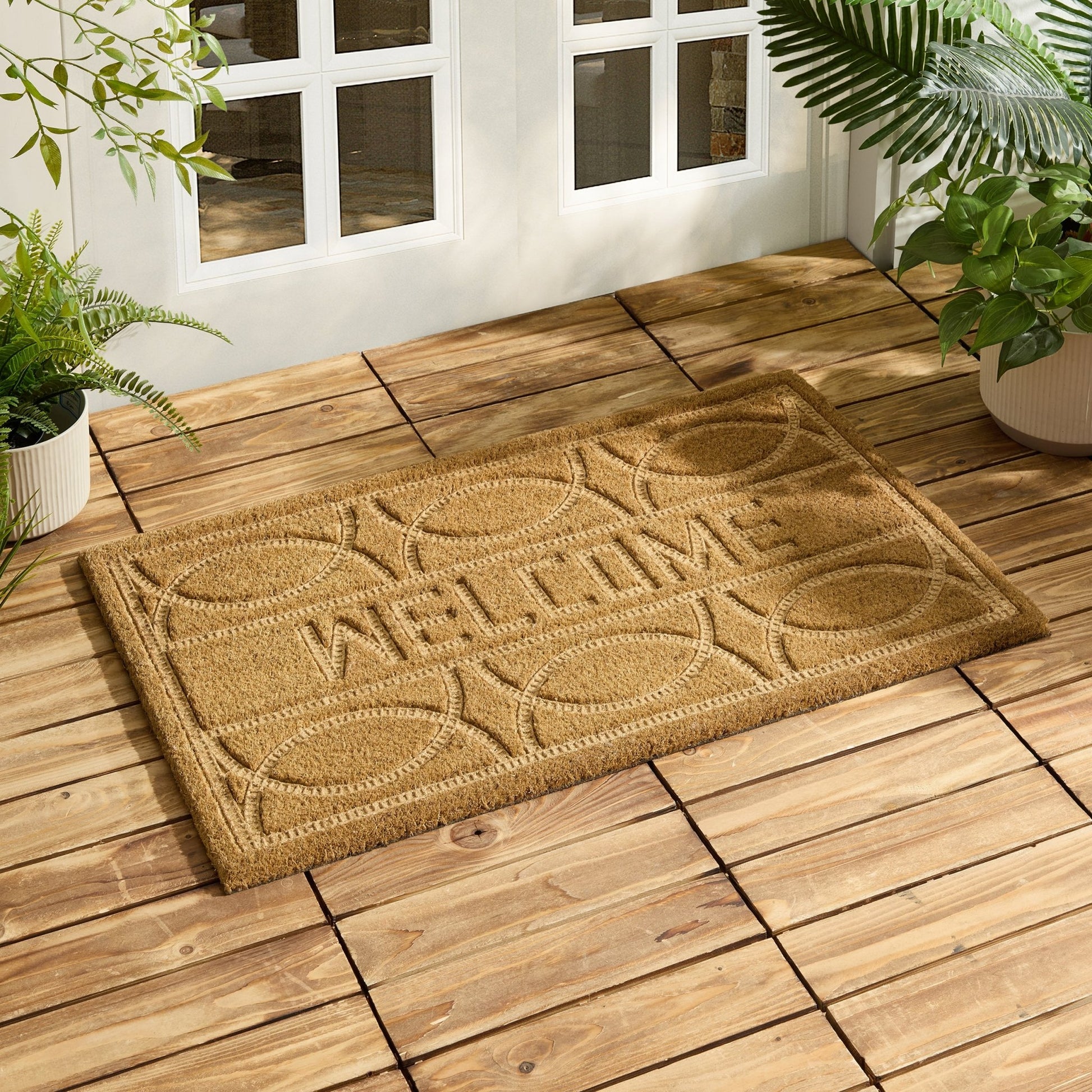 Make a warm first impression with an elegant doormat at the front of your home. Crafted with a 100% coir pile, it’s tough enough to handle daily foot traffic while adding a natural texture to your entryway.