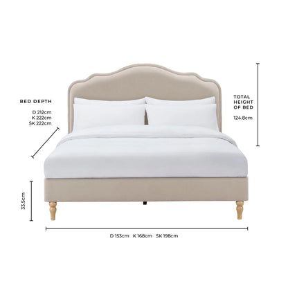 Elegant and stylish, the Wiltshire Bed is so beautifully designed that it will blend seamlessly with any bedroom interior. Made with a premium matte velvet fabric in a neutral sand shade, it also features a stunning scalloped headboard for a classic yet stand out look. For a sleep that feels as good as it looks, it has a durable sprung slatted base for unrivalled comfort.